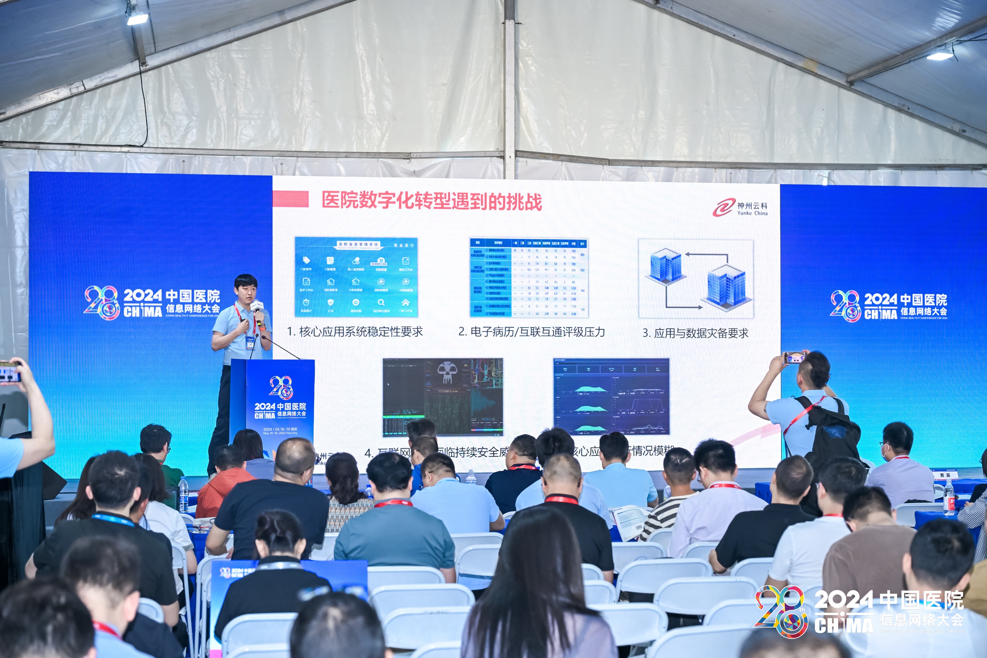 2024年5月17-19日,第28届中国医院网络信息大会(CHIMA2024)在南京圆满落幕。本次大会以新质生产力理论为指导,以深化应用,融合创新,用信息技术赋能医院高质量发展为主题,邀请国家卫生健康委相关司局领导、两院院士、国内外医疗卫生信息化领域知名专家学者、领军人物做主旨报告。在这场医疗信息化的年度盛会上,金年会jinnian会上携其“保障医院核心系统健康无虞”主题演讲精彩亮相,成为展会的一大亮点。