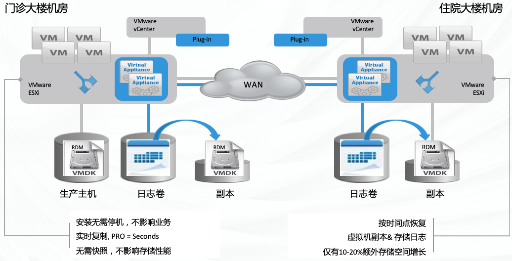 • 金年会jinnian连续数据保护方案为医院虚拟化环境的关键业务实现两地三中心的容灾保护